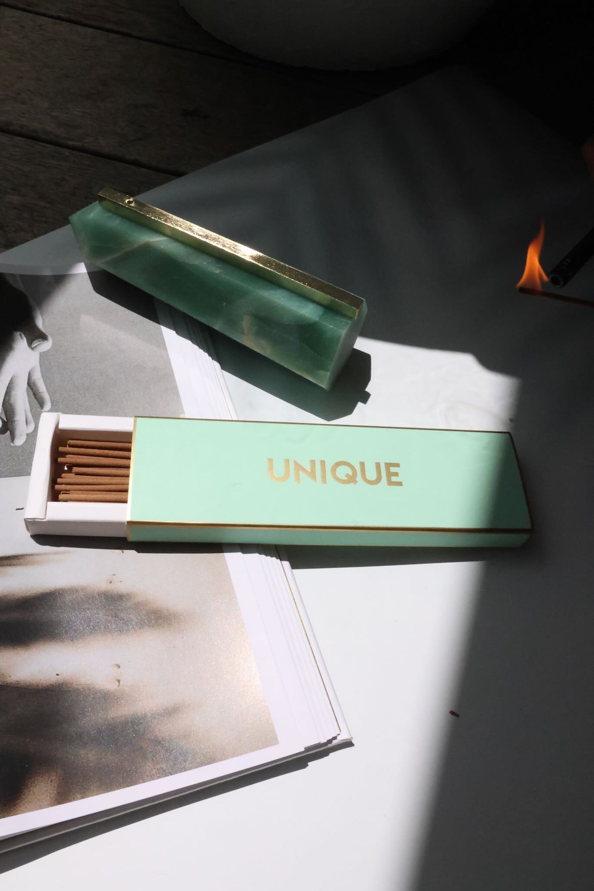 30 traditional incense sticks with a simple, pretty golden incense holder, and a positive message on the box to add to the soothing atmosphere of the incense. Suitable for all types of moments (meditation, yoga, time with friends...)