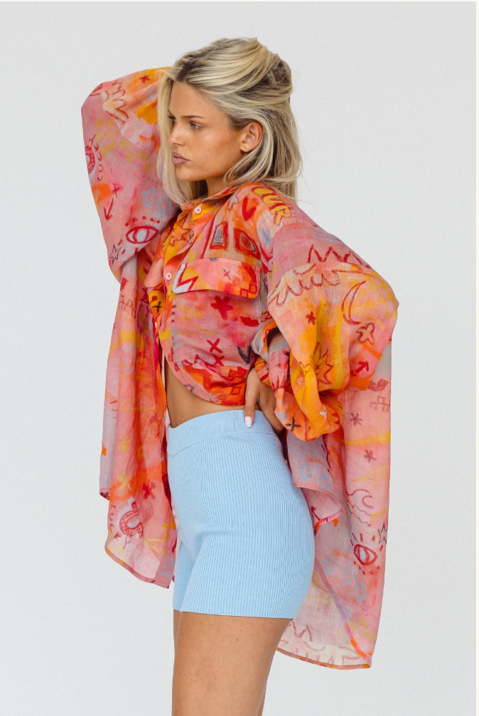 The Sia Wrap Dress is your ticket to effortless summer style. This playful kimono-inspired wrap in an alluring heart print, features billowing flared sleeves and a flattering tie-front design that works with every body shape. Simple, chic, and endlessly fun.