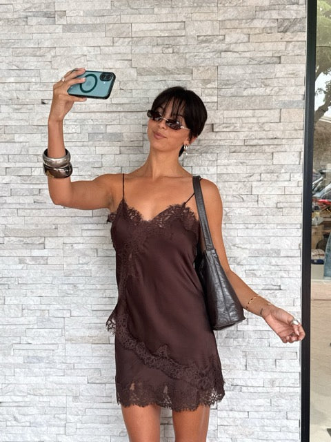 The LUMI Mini Skirt by The Line is a shorter take on our signature bias-cut silhouette. Designed with a comfortable elasticised waistband, it skims the body with a clean, fluid drape while remaining easy to wear. Finished with hand-cut lace trim at the hem, LUMI balances feminine detail with an uncomplicated shape. Designed to be worn as a set with the LILA Top, it also works effortlessly styled back with oversized shirting or simple tanks.