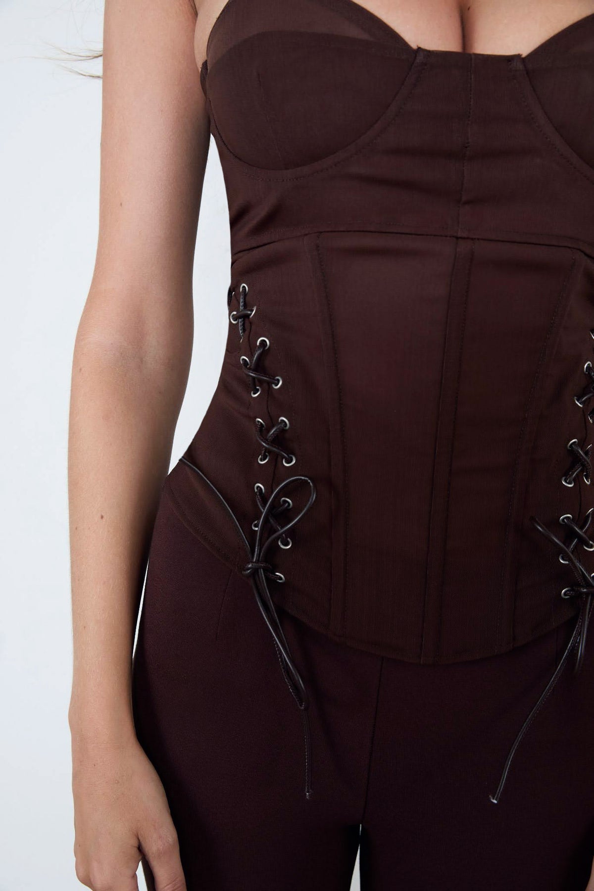 The Christina Corset is back in chocolate. With a built-in underwire bra and adjustable straps, it's the perfect fit for you. Crafted from our most form-fitting mesh, it was made for you.