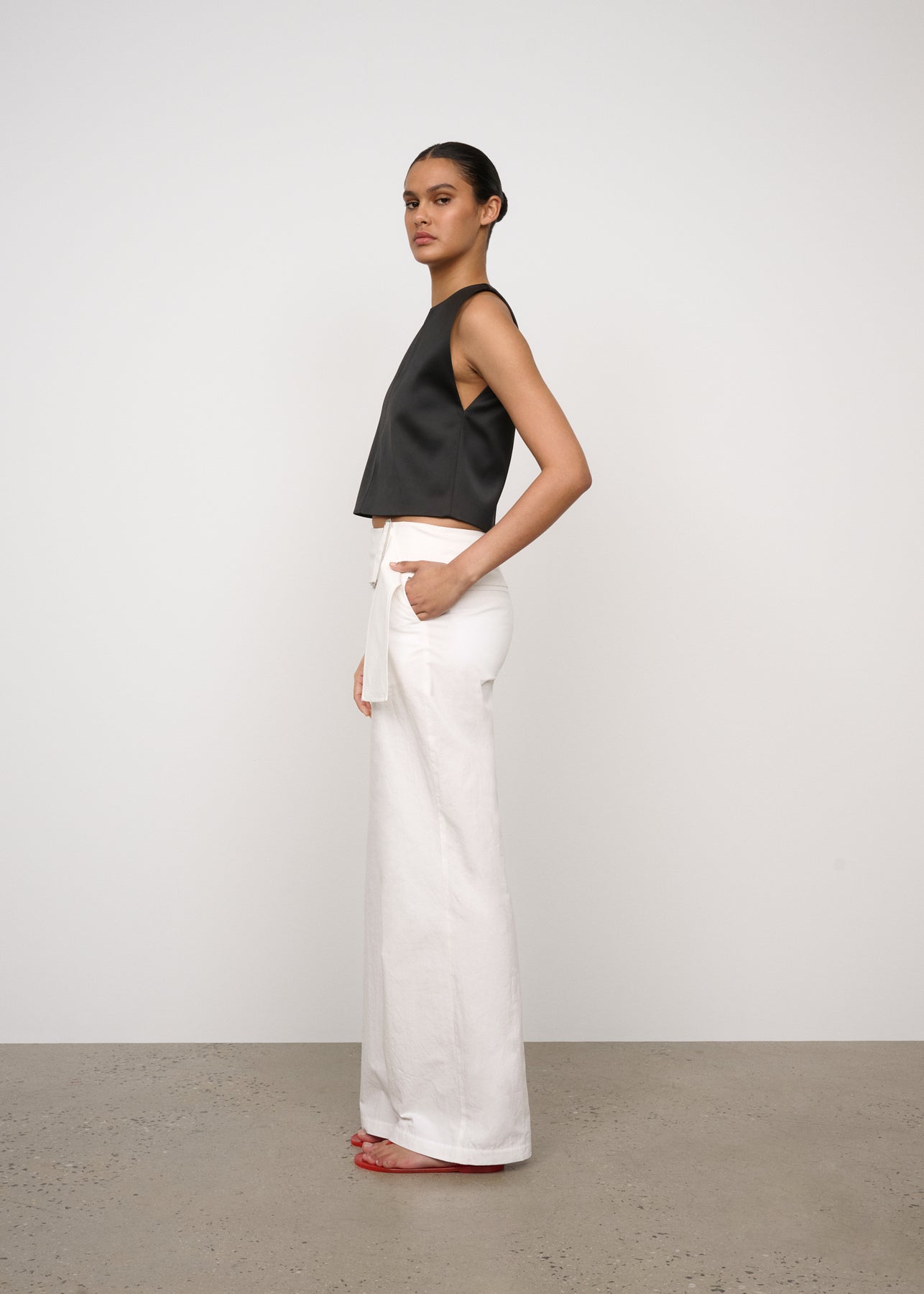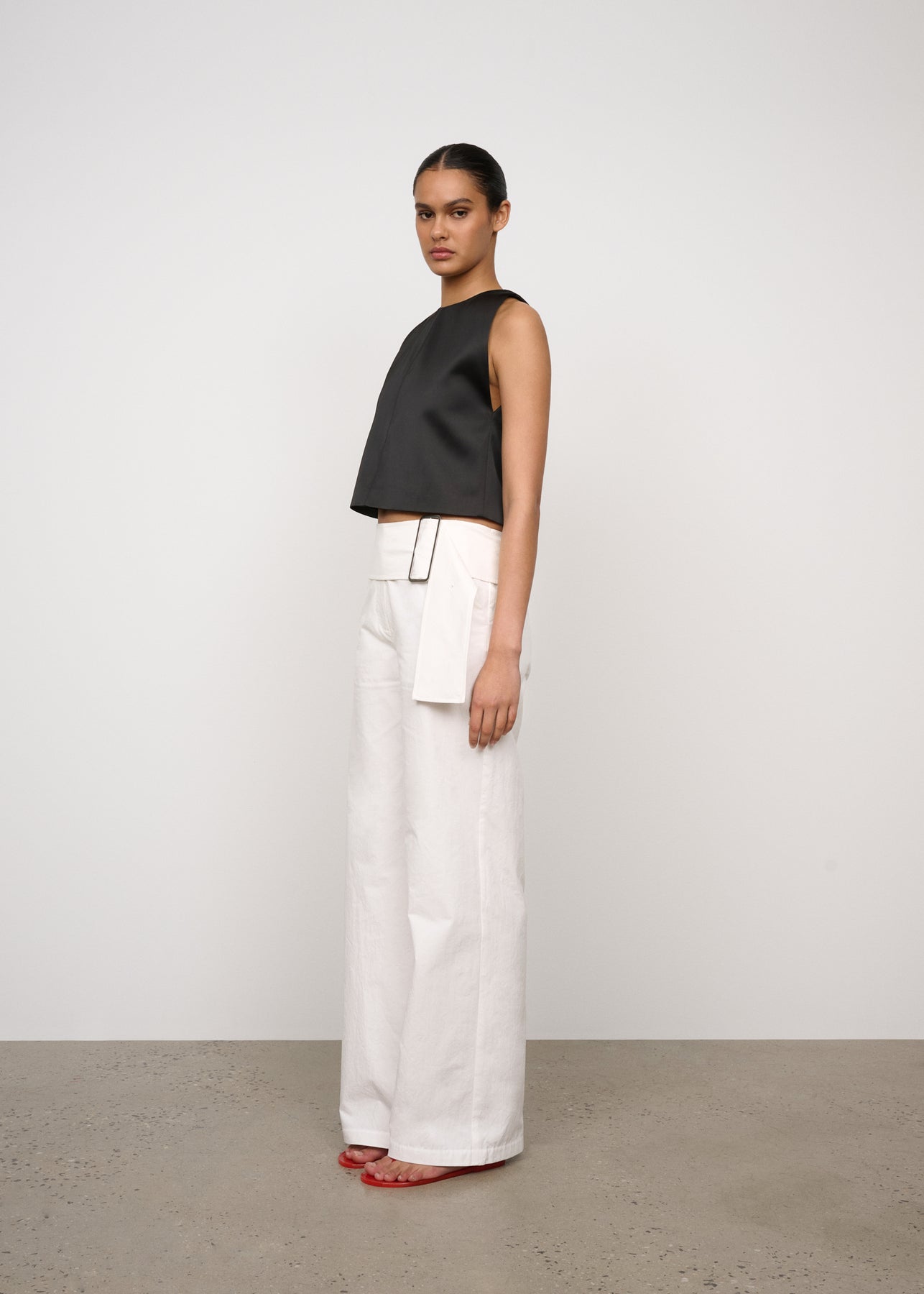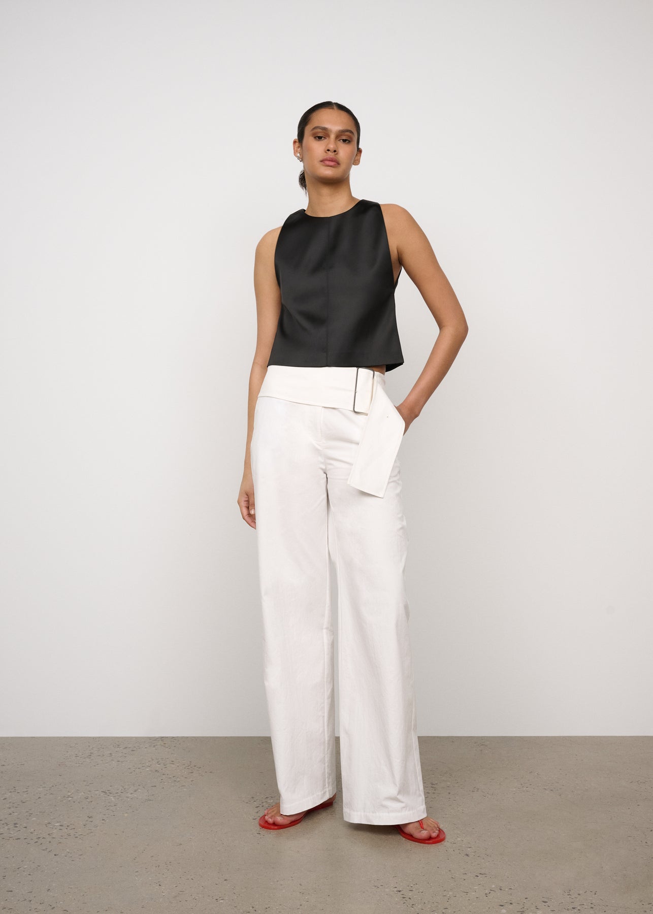 A tailored pant with removable feature belt with buckle detailing. Cut in a crisp cotton linen blend, perfect for the warmer months.