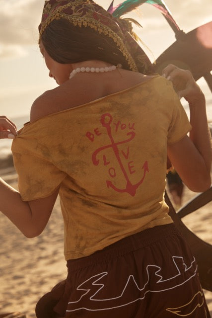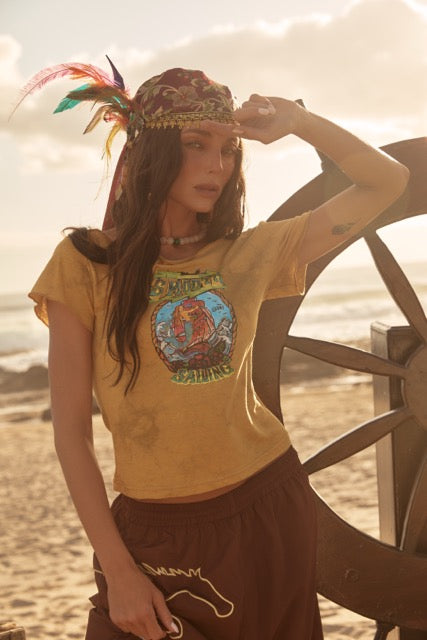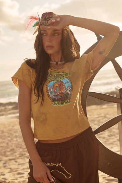 Featuring vintage-inspired pirate graphics on the front and an anchor motif at the back, its a wearable reminder to stay grounded, stay open and stay true. Equal parts playful and meaningful, this piece feels collected, not curated.