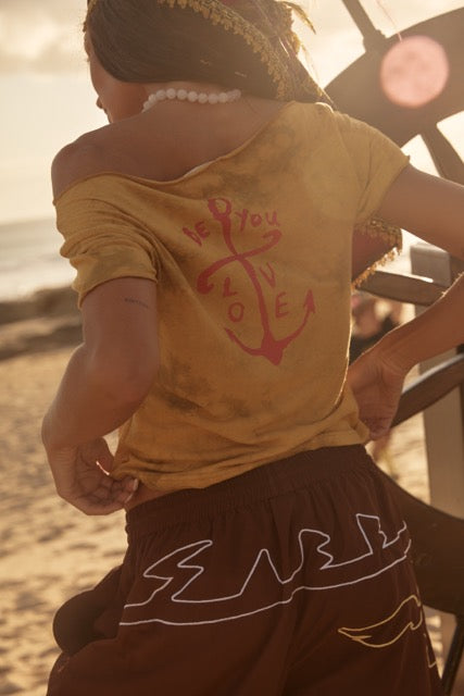 The Aye Aye Off the Shoulder Tank is for slow sails, warm sand and trusting your own compass. Softly washed and perfectly slouchy, this tank drapes off the shoulder with ease… Effortless, undone and sun-kissed.
