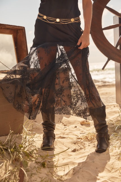 The Lace Maxi Dress is made for moonlit beaches, long walks home and moments that don't need explaining. Fluid and feminine with a sharp edge, it drapes effortlessly over the body, moving with the wind and catching the light as you go.