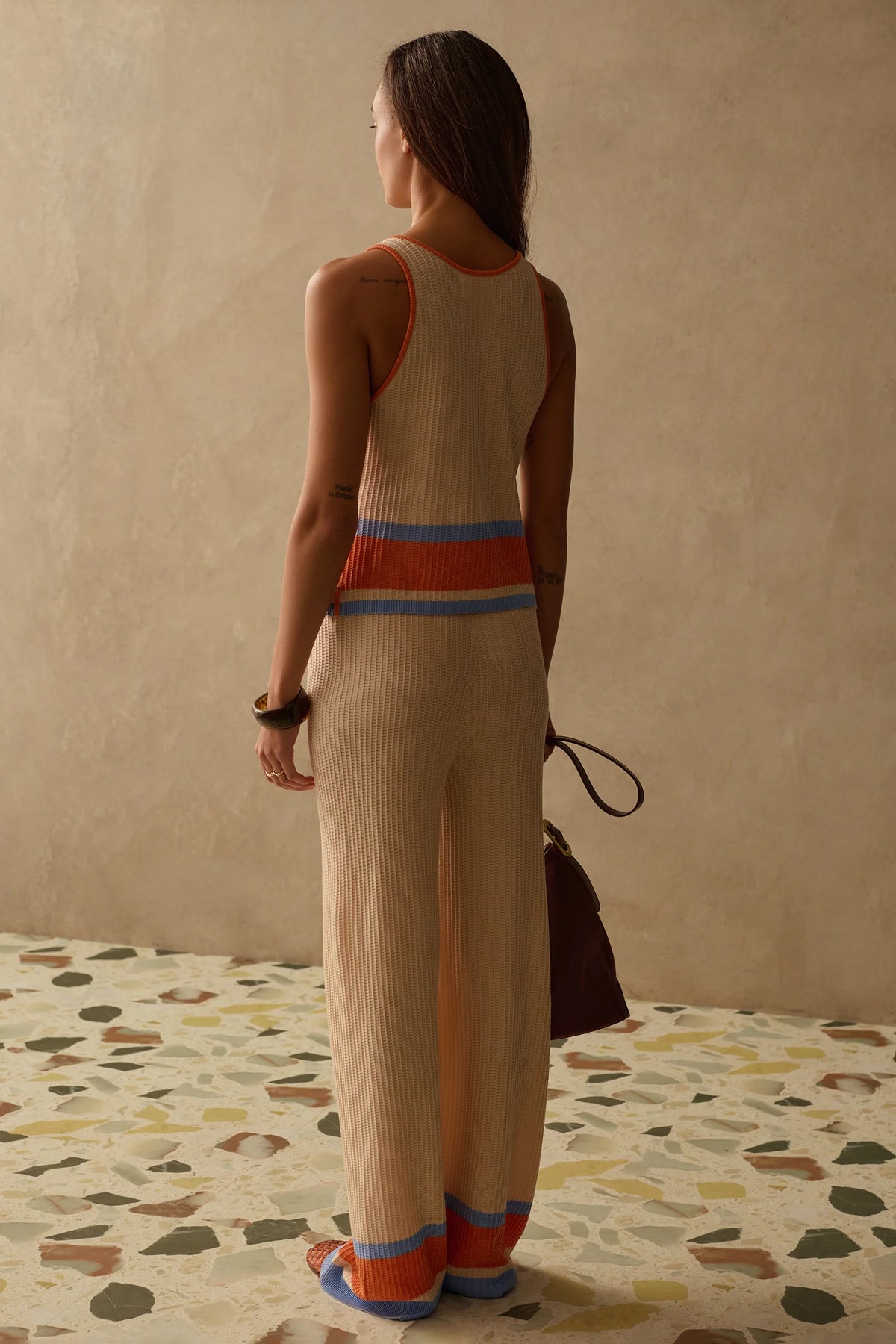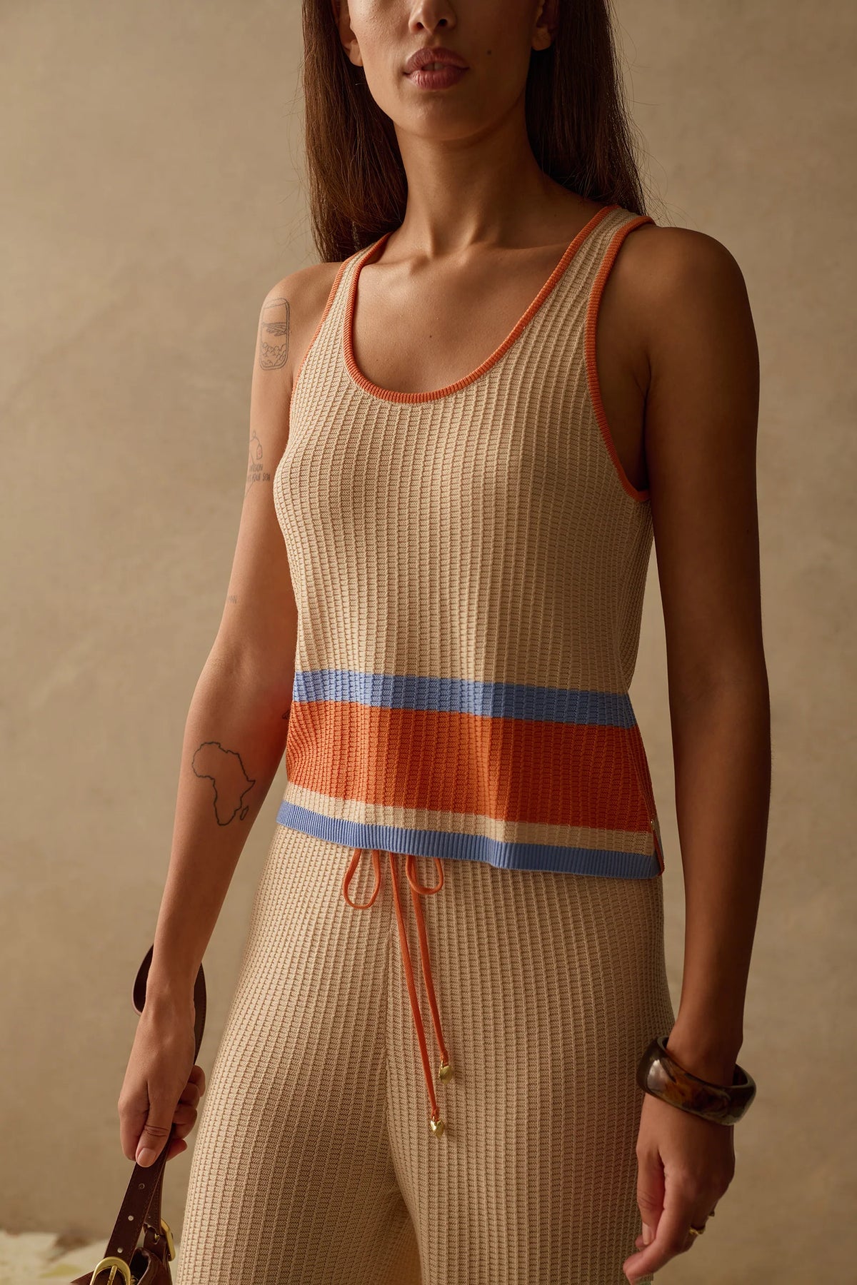 A perfect wardrobe staple and layering piece. The Cali Knit Top is a slim fit, so it’s easy to tuck in or layer. It features a minimal crew neckline with a statement stripe running across the body. Perfectly paired with jeans or matching knit pants, standing alone or with layers over the top.