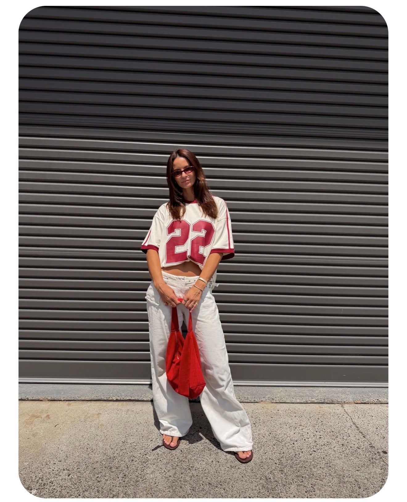 Gear up with the Twenty Two Tee, an oversized unisex design that pays tribute to our iconic Twenty Two fragrance. This statement tee features a soft cream base with bold cherry-red 22 numbers on the front, finished with matching cherry ribbed trims and stripe detailing along the shoulders and sleeves for a vintage football jersey–inspired look.