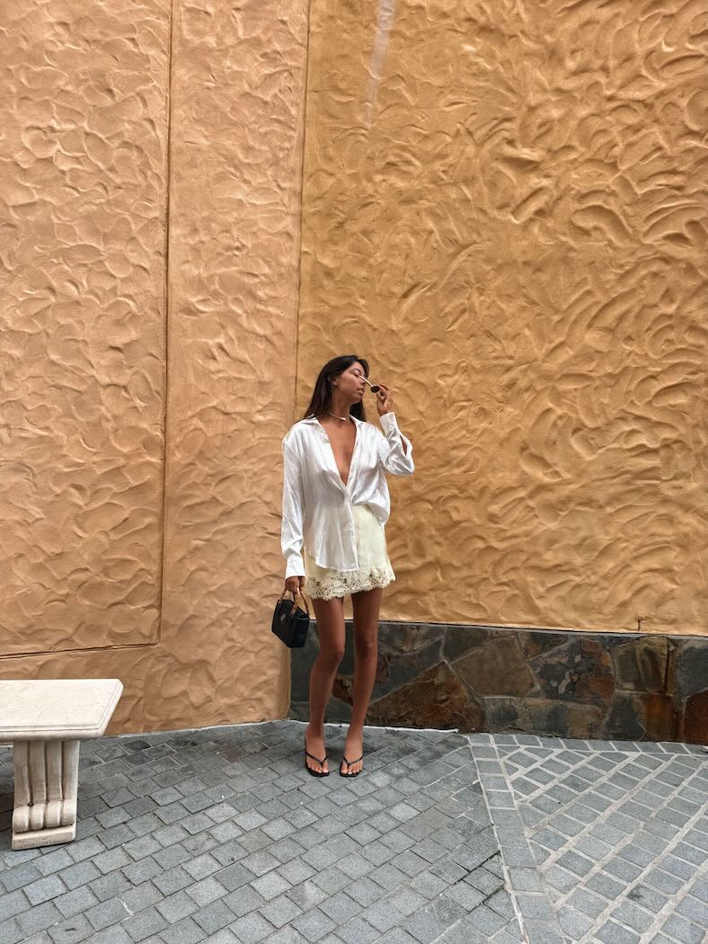 The LUMI Mini Skirt by The Line is a shorter take on our signature bias-cut silhouette. Designed with a comfortable elasticised waistband, it skims the body with a clean, fluid drape while remaining easy to wear. Finished with hand-cut lace trim at the hem, LUMI balances feminine detail with an uncomplicated shape. Designed to be worn as a set with the LILA Top, it also works effortlessly styled back with oversized shirting or simple tanks.