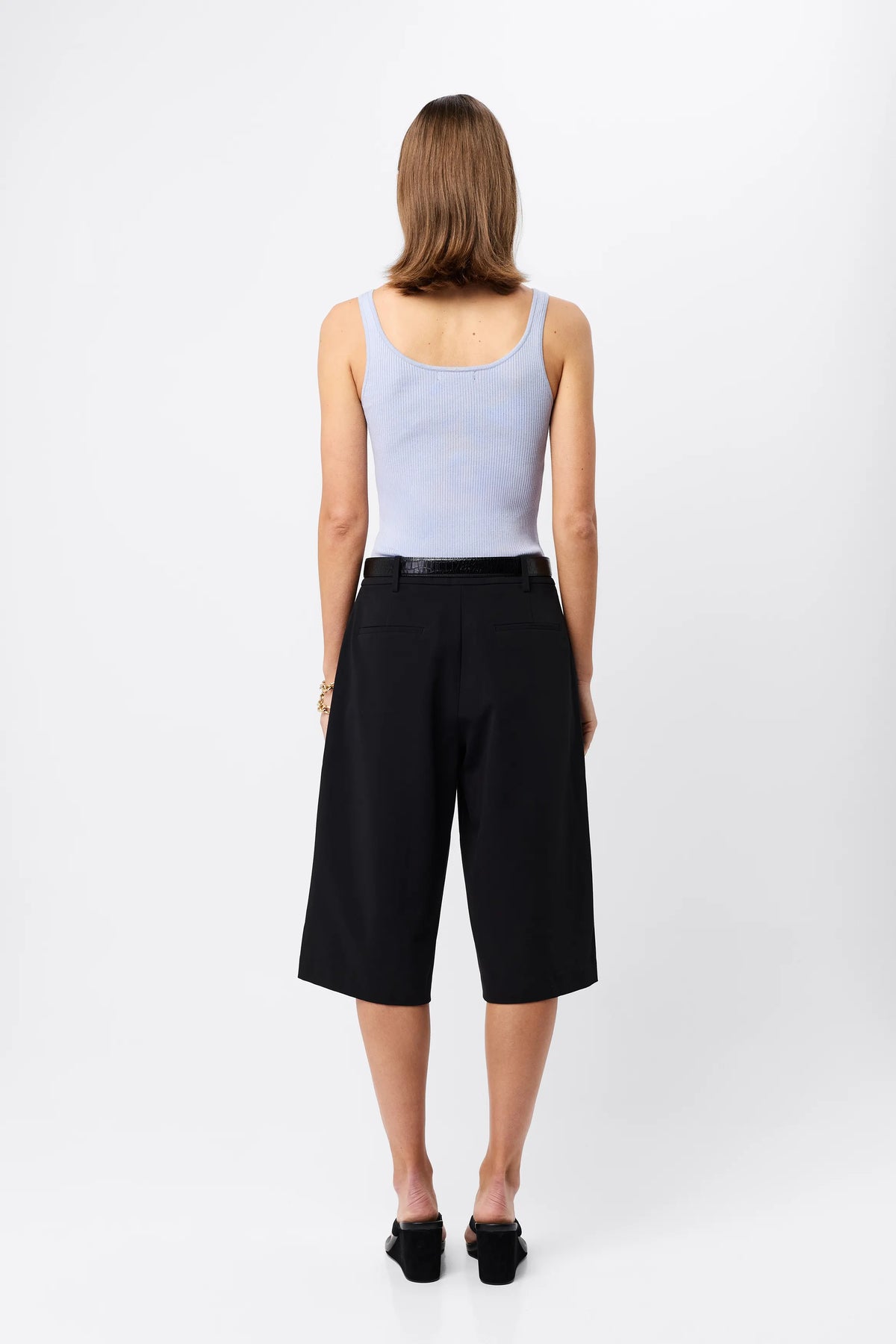The Fine Line Knit Tank in White blends elegance and ease in a timeless silhouette. Crafted from high-quality ribbed knit fabric, it features thin straps and a scoop neckline at both the front and back for a flattering, minimalist finish. Designed to transition effortlessly from casual to elevated occasions, this singlet is a versatile staple you'll wear on repeat. Style it under tailoring for a refined look or wear it solo for understated, everyday polish.