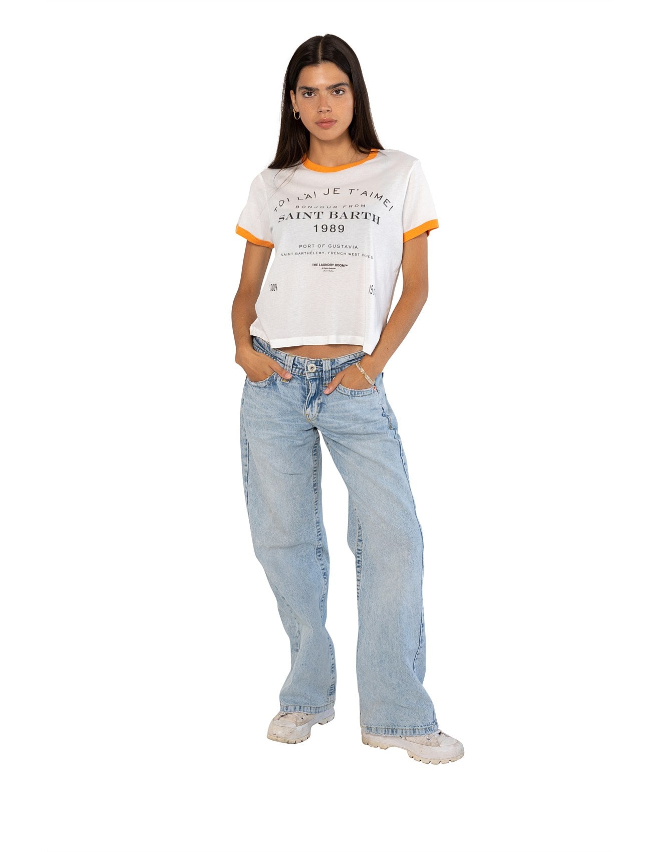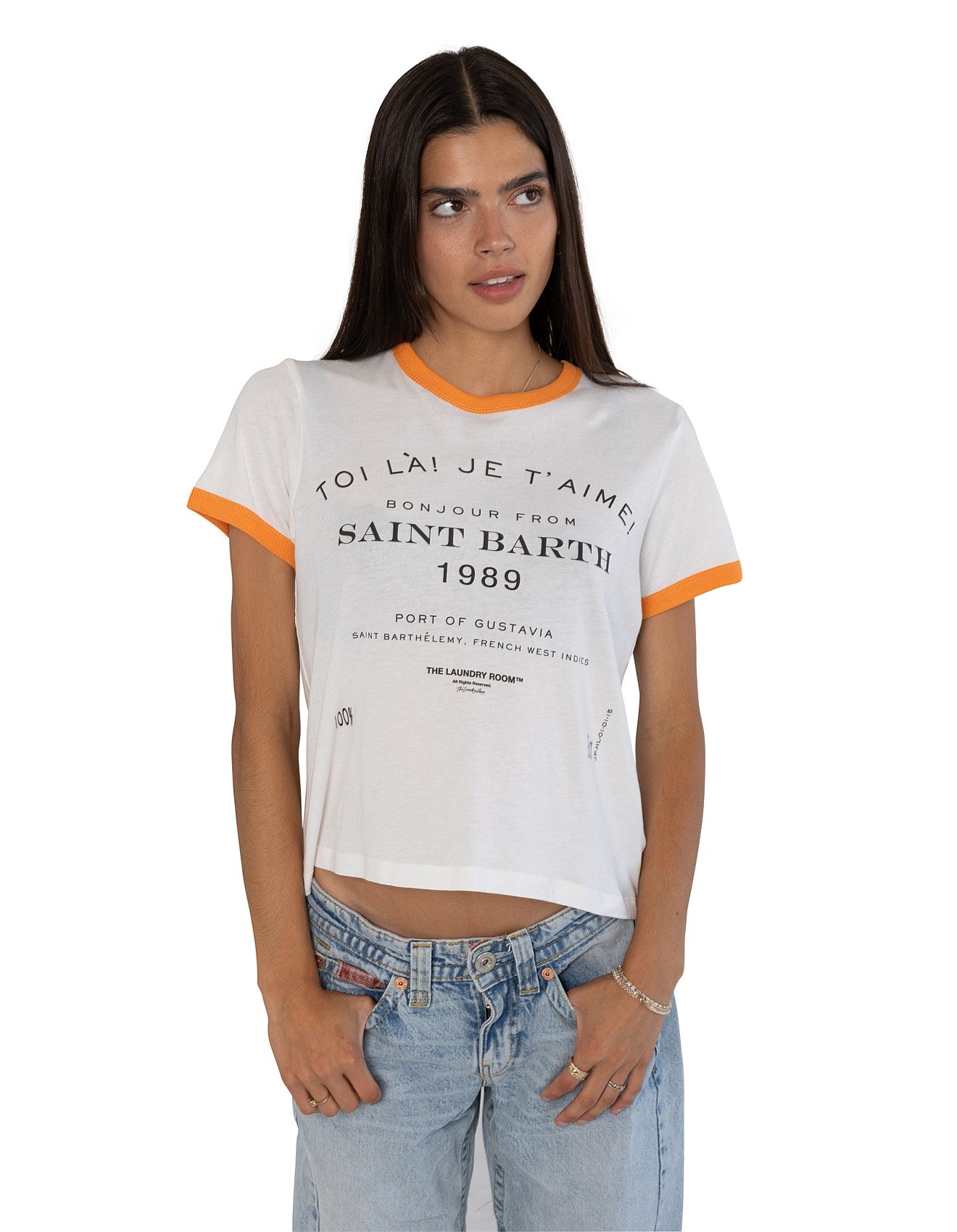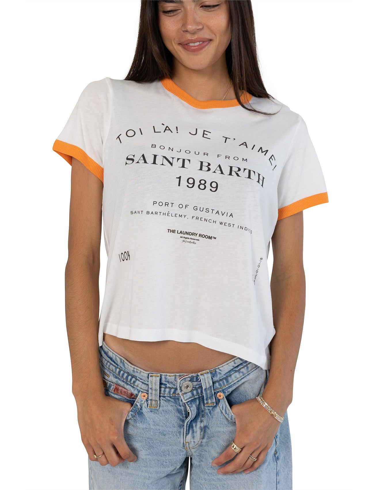 Capture the vibrant essence of Saint Barth 89 with this captivating graphic print, part of a collection celebrating global destinations. The fabric feels luxuriously soft and smooth against the skin, offering a breathable, lightweight comfort due to its unique blend of 50% cotton and 50% modal butter jersey knit.