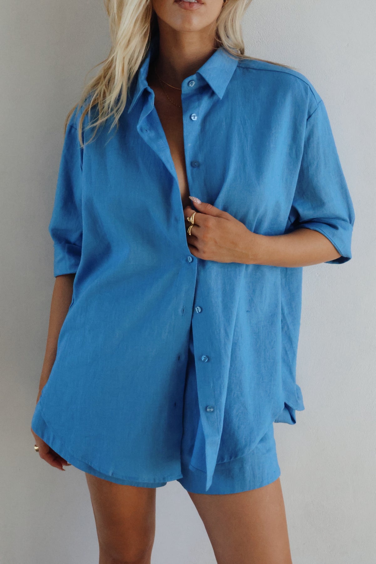 THE LINE | BOWIE SHORT SLEEVE LINEN SHIRT OCEAN | BABY LEMONADE STORE